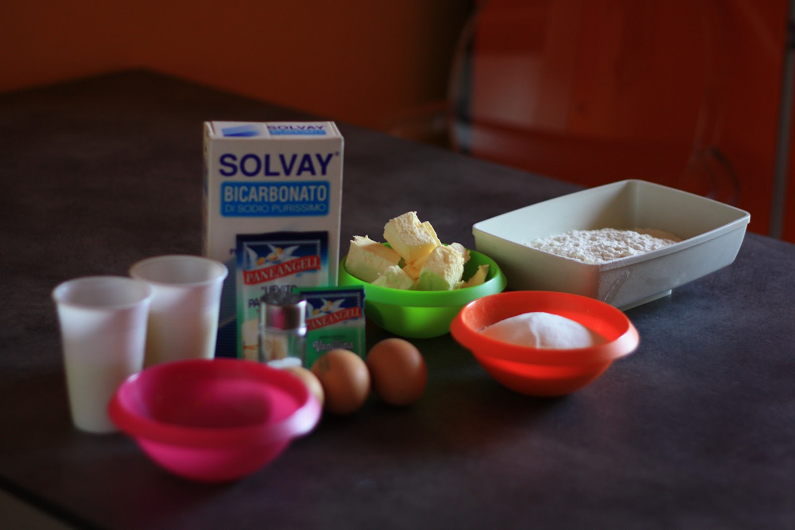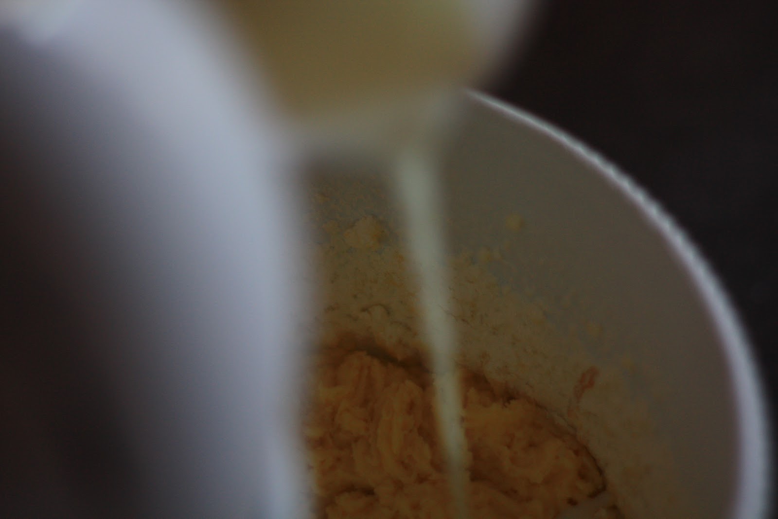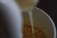 ora alternate il miscuglio setacciato di farina, lievito e bicarbonato, da buttare a cucchiaiate nella ciotola, al latte, da versare poco per volta.